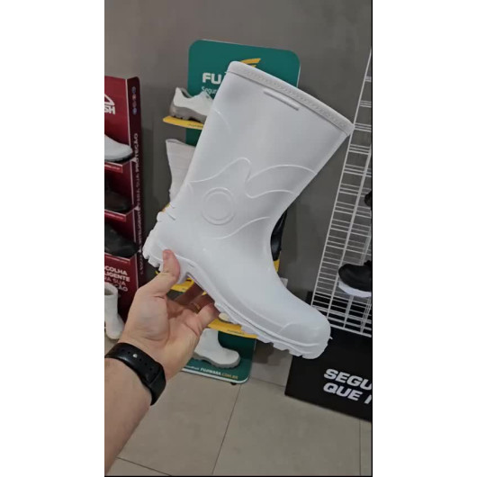 BOTA DE PROTEÇÃO DE PVC IMPERMEÁVEL, COM FORRO TÉRMICO, CANO CURTO DE 260MM LINHA ACQUA LEV, CONFECCIONADA EM POLICLORETO DE VINILA (PVC) E MASSA NITILICA PROPORCIONANDO MELHOR RESISTENCIA A ABRASÃO, RESSECAMENTO E TRINCAS. FORRAÇÃO INTERNA EM POLIESTER, SEM BIQUEIRA. SOLADO DE POLÍMERO PLÁSTICO EM PVC, REFORÇADO COM MASSA NITRÍLICA, INJETADO EM UMA SÓ PEÇA COM ESPESSURA DO CANO EM 2MM E ESTRIAS LATERAIS FACILITANDO O CALÇAR.TOQUE EMBORRACHADO E ANTIDERRAPANTE