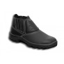 Calçado de segurança básico, modelo botina, constituída de couro, desenho do cabedal tipo (B), fechamento em elástico. Sistema strobel com palmilha de montagem em não tecido e injeção direta do solado no cabedal. Região do salto totalmente fechado, com resistência ao escorregamento, solado bidensidade, com bico de aço.