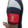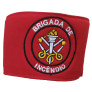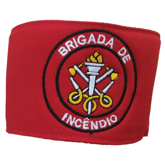 Braçadeira de identificação modelo Brigada de Incêndio, confeccionada em brim vermelho, 100% algodão, com espuma interna para encorpar e manter firme no lugar. Bordada em cores com o emblema da Brigada de Incêndio, diretamente na peça, ainda desmontada, garantindo um produto de ótimo acabamento.