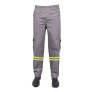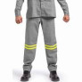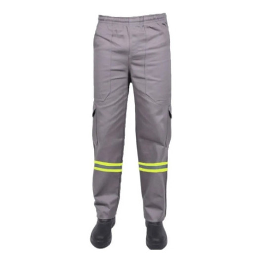 Calça com fechamento botão retardante a chama, braguilha botão com proteção, cós traseiro elástico de 40mm, 5 passantes, 2 bolsos frontais chapados, 2 bolsos traseiros chapados, com faixa refletiva.