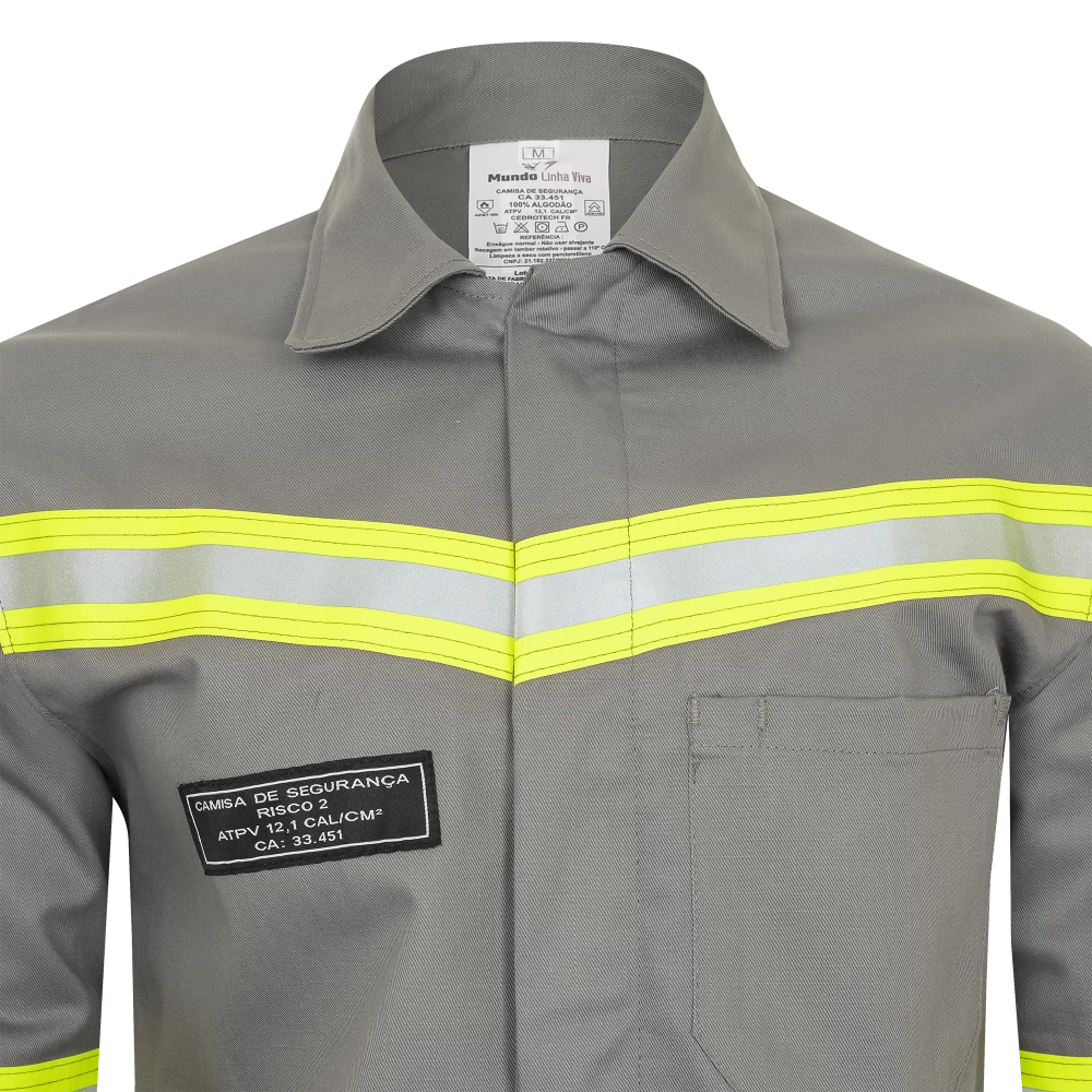 Camisa Cinza Eletricista NR10 ATPV 12,1 Risco 2 Com Refletivo CA 48511