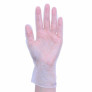 Luva de segurança confeccionada em vinil, sem pó bioabsorvível, ambidestra, superfície lisa.