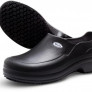 Calçado ocupacional de uso profissional tipo sapato, fechado na parte do calcanhar e na parte superior,confeccionado em EVA, soleta de borracha antiderrapante, resistente ao escorregamento em piso cerâmico com solução dedetergente e piso de aço com solução de glicerol, resistente à absorção de energia na região do salto e ao óleo combustível,com palmilha interna removíveível.